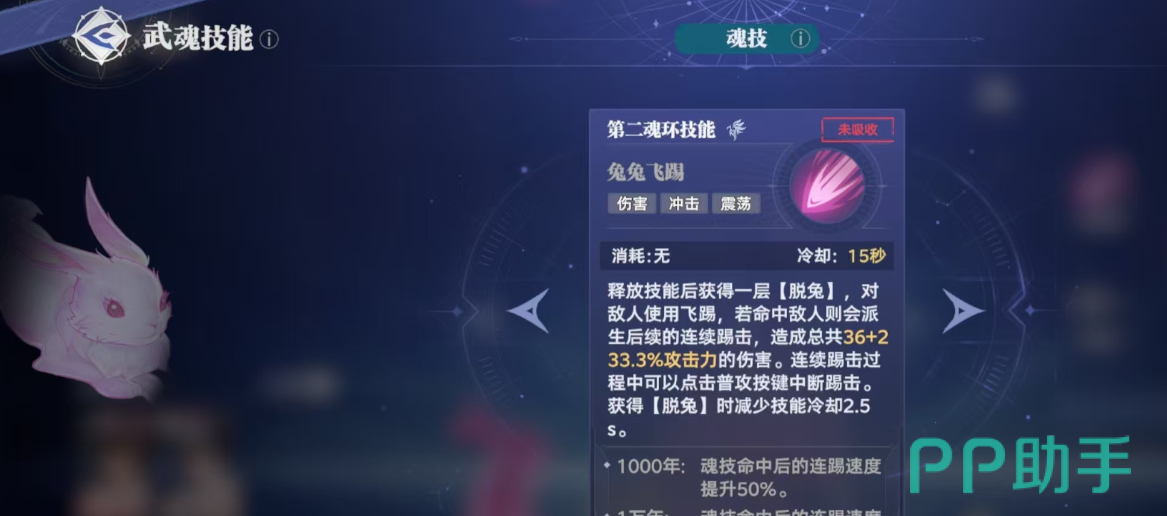柔骨兔这种武魂对单体能造成高额的伤害,攻击的时候凭借极快的速度能够从四面八方对敌人进行攻击,在攻击对手时还可以把脱兔的层次给叠加起来。