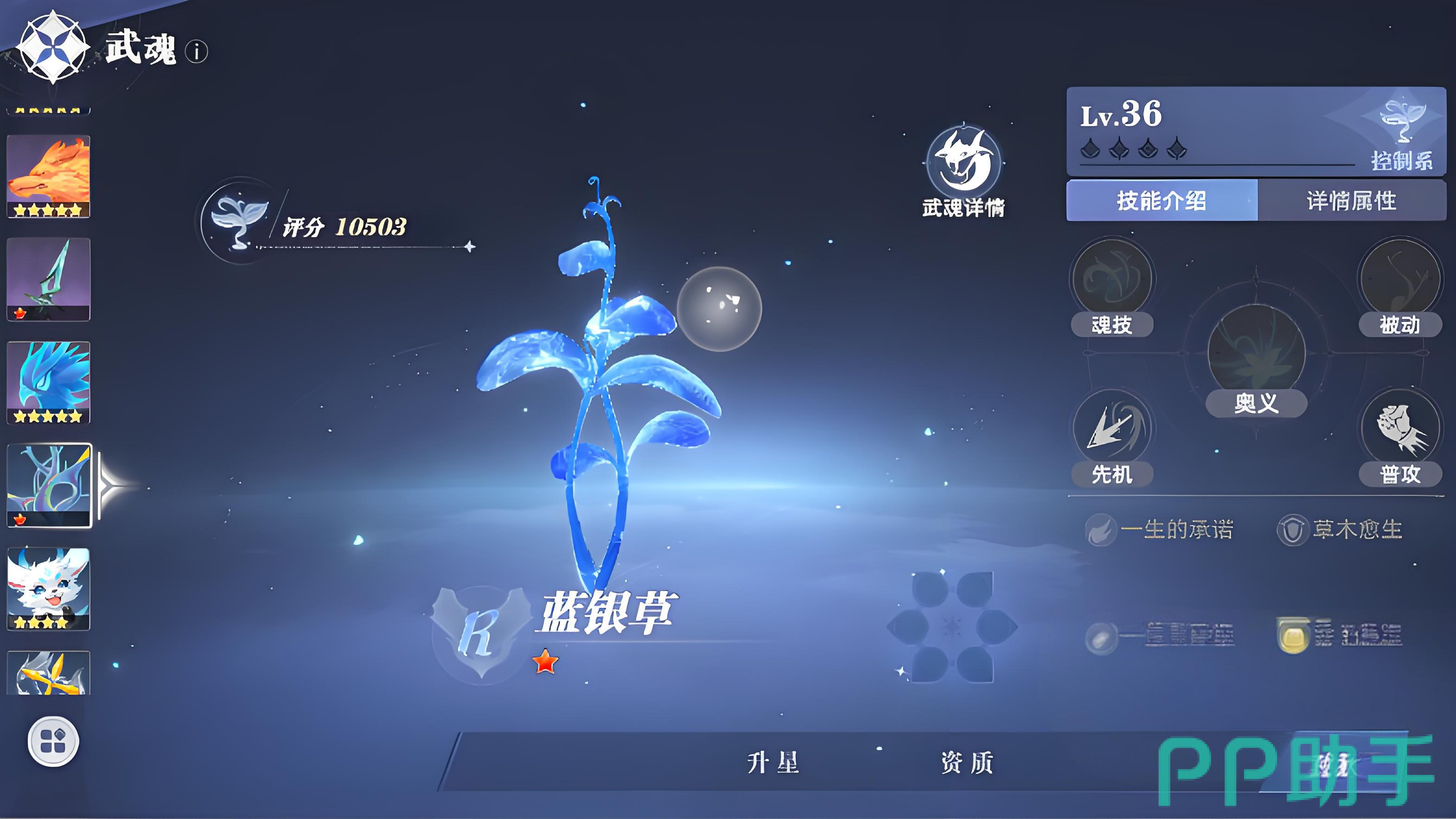 这一套阵容是当前武魂在获取上比较容易的一套阵容搭配,蓝银草有着强大的控制效果,它的技能束缚能够直接把敌人控住,蓝银草在把敌人束缚住以后,幽冥灵猫接上直接开始对敌人进行输出,幽冥灵猫是一种单体攻击伤害非常高的武魂,邪火凤凰在幽冥灵猫打一套以后,直接开始大范围的攻击,七宝琉璃塔就在后排给队友提供增益就可以了。