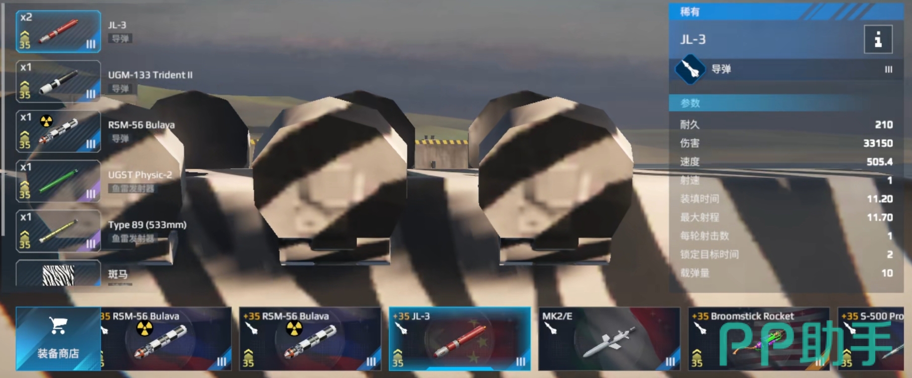 潜射二连发锁定弹,单发伤害就非常的夸张,且具备一定的AOE能力。而且这款导弹在游戏里的突防能力相当优秀,5km以上基本可做到完全突防。
