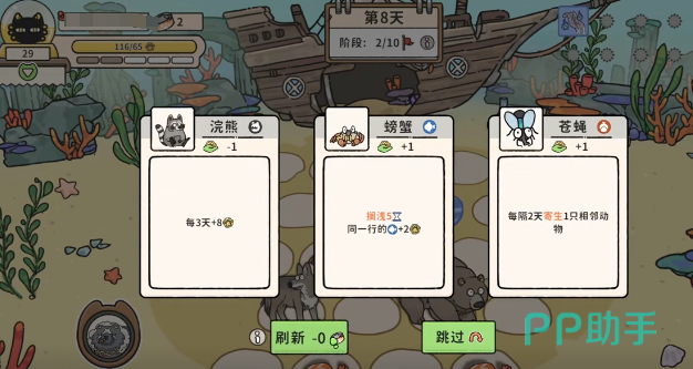 从第5个阶段开始就可以通过蚂蚁去有效获取金币,同时也应该考虑转型。比较稳定的就在于选择爬行家族,可以选择蜥蜴。这也是在后期通关时所需要的,而如果想要转小物合成流,可以选择鳄鱼加上罐头。拥有足够的罐头,也可以进一步的提升收益。