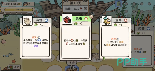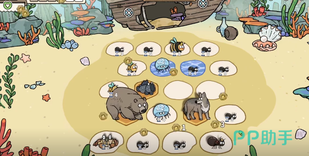 玩家进入到游戏之后,每次挑选动物时就需要注重于选择蚂蚁,其他的这些动物全部都可以删除掉。必须要保证场上起码有10只蚂蚁。在第3阶段结束之后,如果蚂蚁数量不足够,也可以选择一些夜行动物。