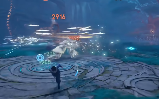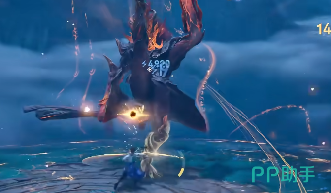 角色还有一个名叫逐星归尘的技能,使用这个技能之后主要是释放角色自身的剑气,击败对方之后能带来减速效果,比较独特的是如果场景里有火焰或者是水域,那就可以直接使用剑气让火焰可以叠加灼烧伤害,水域叠加减速伤害,这样就不是单纯的击中对手,而是能带来相应的伤害。