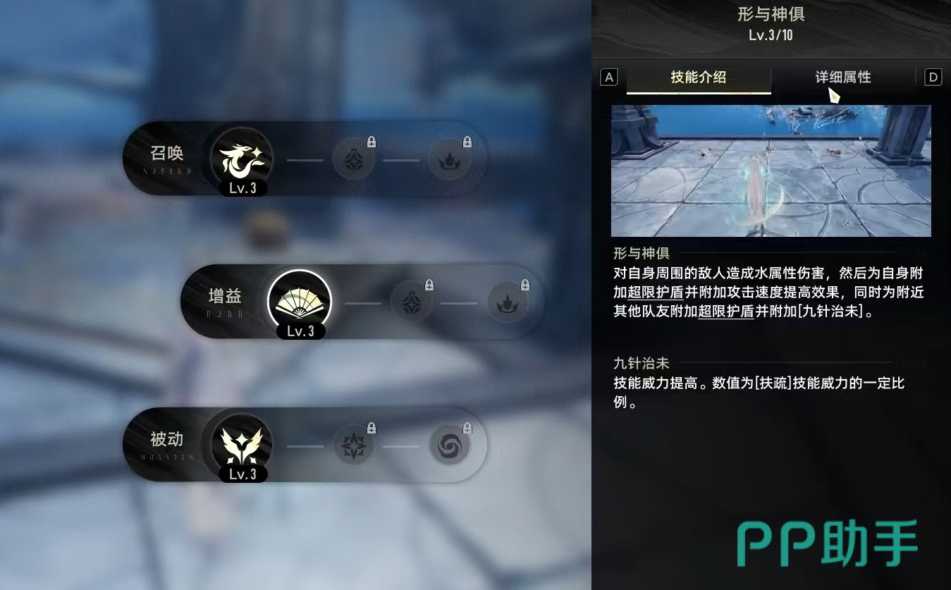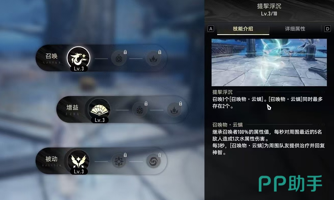 第3个技能是为自身以及附近的队友恢复全部生命值和护盾值,同时附加增益效果,在此技能释放后,自身还能获得攻击速度加成。另外还有根源技能,也有不错的效果,比如根源可以将云璃的存在数量提升到3个,选取的目标数量提升到5个,还可以使云璃在进行治疗时,溢出的治疗量可额外恢复神智。这样就集中了复活、治疗、伤害等一系列效果。