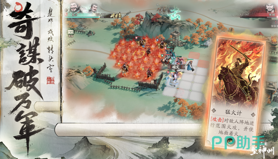 除了在美术与剧情方面的打磨之外,《三国望神州》的核心玩法同样令人眼前一亮。游戏融合了战棋与回合制玩法,战斗策略性十足。兵种体系分为猛、刚、严、巧四大类,各兵种之间存在鲜明的克制关系,玩家需要根据战场环境和敌我兵力灵活搭配阵容。同时,地形因素在游戏中也占据重要地位,不同地形会对兵种发挥产生不同影响,进一步加深了战斗中的策略性。此外,游戏中的“奇谋系统”更是亮点之一,玩家可在战斗中施展如火攻、水淹、奇袭等强力计谋,关键时刻甚至可以逆转整个战局,真正让玩家体验到三国时代“运筹帷幄、决胜千里”的智谋对抗。