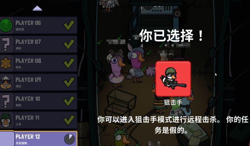 鹅鸭杀狙击手的技能玩法就给朋友们分享到这里了,这个角色的技能相当特殊,具备刀人的能力,但是刀人又有不小的限制,一不小心可能让自己身亡,所以使用技能一定要谨慎,要判断清楚形式,才能选择合适的时机给自己建立优势。