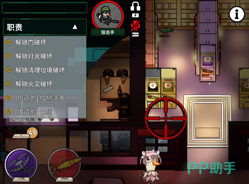 狙击手拥有两个核心技能,分别是“瞄准射击”和“会议狙击”,先看瞄准射击,使用该技能时需要保持静止不动,通过瞄准镜来寻找目标,如果能成功击杀的是反派角色“猫头鹰”就能直接获得胜利,但是如果杀错了目标就会直接暴露自己的位置;