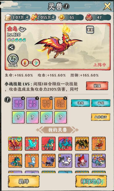 金乌以其独特的灼烧技能在战斗中独树一帜,它的攻击能够对敌方施加灼烧状态,使敌人在接下来的回合中持续受到伤害,这种持续伤害效果在持久战中尤为显著,能逐渐削减敌方的生命值,为己方创造血量优势,金乌的技能机制使其适合与一些能够提升灼烧伤害、延长灼烧回合的仙术和器灵搭配,对于零氪玩家来说,虽然获取金乌可能需要一定时间和精力,通过逐步培养可以发挥出金乌的强大实力。