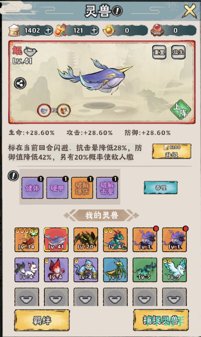 鲲作为红色仙兽,在战斗节奏把控与团队增益方面表现出色,它两回合就能发动一次攻击,攻击频率相对较高,技能不仅能降低敌方的防御、闪避和抗击晕能力,为己方输出创造有利条件,还能变相增加己方控制技能的生效概率,在连携搭配上幽冥蛟是不错的选择,幽冥蛟每三回合释放一次攻击,可提升自身闪避与反击,与鲲配合能增强队伍的生存与反击能力。