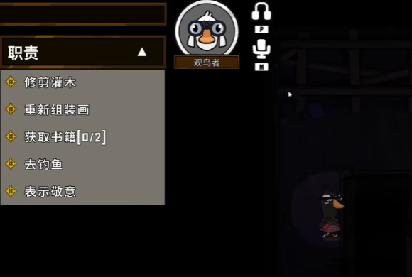 当游戏进程推进出现可疑情况时,观鸟者的技能便有了用武之地,像是在发现尸体、触发紧急会议,或者察觉到某些区域气氛异常时,观鸟者应迅速靠近墙壁,开启技能,使用技能时务必确保自身所处房间的安全,由于开启技能后自身周围视野受限,对周边危险的感知减弱,若所在房间此时有鸭子潜伏,极易遭受攻击。