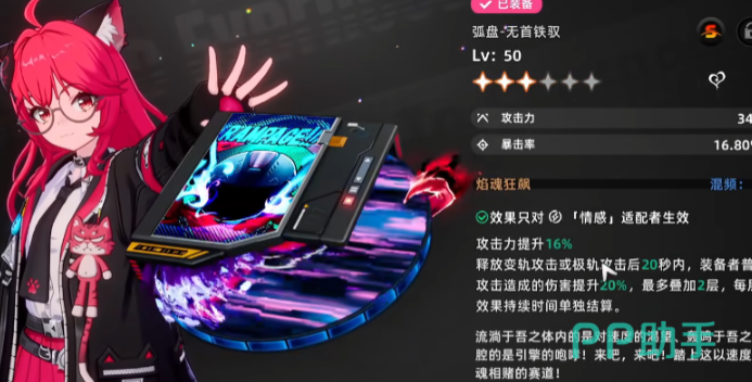 如果你为他们选择了准确的弧盘,那战斗力,可以说是成倍的增长。比如说如果你为娜娜莉装备上无首铁驭,那不仅能够直接提升他的基础攻击力,还能够使她的暴击率百分比大幅度的增加。焰魂狂飙和娜娜莉的适配性就更高了,首先是攻击力能够提升16%,其次就是如果释放了变轨或者是极轨攻击,那么在往后的20秒之内,普攻的伤害将会提升20%,该效果最多能够叠加两层。