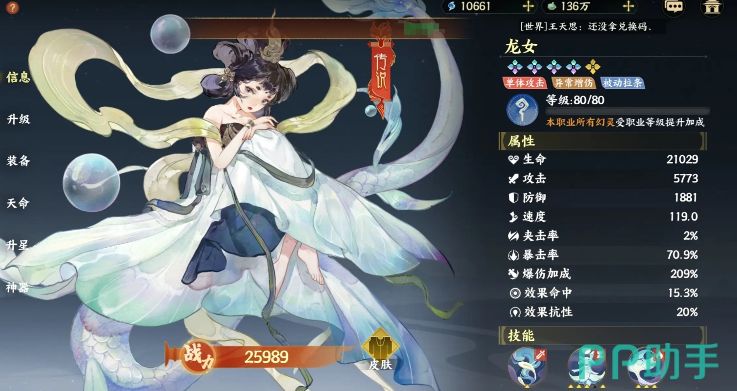 龙女无论是PVE副本闯关,还是PVP竞技对抗,她皆是当之无愧的T0级别存在,其大招堪消耗极低却能施加强力debuff,为全队带来增伤效果,还能触发夹击,每当成功击杀敌方,更是能引领全体推条,顺势偷取能量,掌控战局节奏,而她那回合技,更是集多种保命与输出优化机制于一身,无法选中的状态让其不会受伤,群伤减伤保障团队生存,自拉条减少大招耗能,确保输出频率居高不下,全能的表现在混沌战场以及装备副本等玩法中,她都是法系阵营的核心。