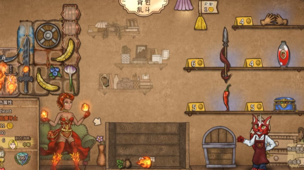前期得话先不要去买猪和宝石匣,这两个若是在前期买得话极其容易崩盘,个人推荐前期在武器上选择一把木剑和一把铁剑,铁剑可以用火焰组合成为火焰箭,木剑和煤炭可以合成火把。