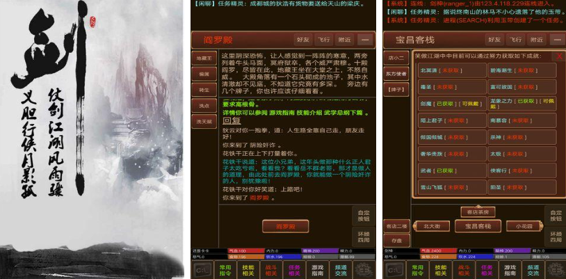 在仗剑江湖MUD游戏中,以文字构建庞大且自由的武侠世界,玩玩家通过文字指令操控角色行动,战斗采用回合制,玩家依据敌人状态和自身武学,合理选择技能释放,战斗过程紧张刺激且充满策略性,游戏剧情丰富,主线剧情贯穿始终,支线剧情散布江湖各处,玩家完成任务可获经验、金钱、装备和珍贵武功秘籍。