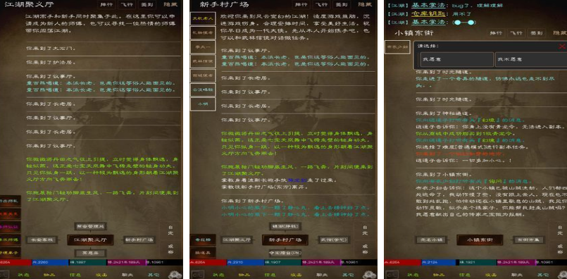 在文字武侠游戏中,文字武侠游戏以文字为基底构建武侠世界,玩家从初涉江湖的懵懂新人起步,在接踵而至的历练中不断精进,最终蜕变为纵横江湖的一代大侠,玩家在游戏中可自由选择门派,各门派武学风格迥异,玩家深入学习门派绝学,不断提升武学境界,战斗中依据敌人特点和自身武学优势,合理运用技能,策略性十足,通过完成主线任务、支线任务以及探索江湖中的隐藏任务,能够推动角色成长。