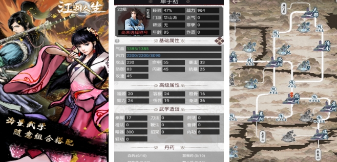在侠客回忆录游戏中,玩家扮演的侠客回顾自己的江湖一生,游戏剧情根据玩家选择不断发展,每个选择都影响后续剧情走向和角色命运,玩家初入江湖可选择门派,门派武学多样,学习过程中需完成门派任务提升门派贡献,解锁更高级武学,玩家在江湖中会遇到各种事件,通过完成这些事件获得经验、声望和奖励。