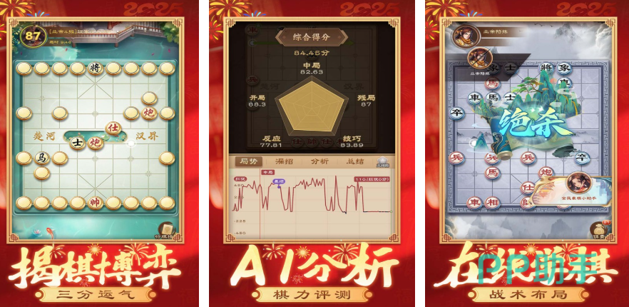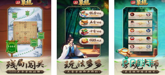 游戏采用沉浸式的水墨画风格,让玩家在体验游戏的时候可以获得较高的乐趣。另外游戏中有ai分级训练,让玩家的水平变得越发的强大。如果在空闲的时候,玩家可以尝试跟人机博弈,这时候会根据玩家的水平来动态调整策略性。目前该游戏被称之为象棋私教,简单来说就是可以利用它来让玩家更合理的玩象棋。