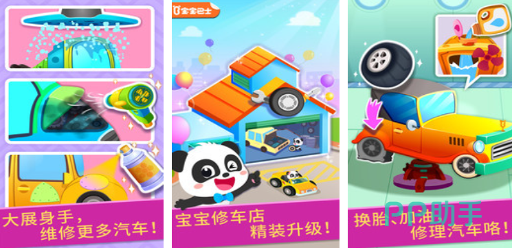 在宝宝修车店游戏中,各式各样故障车辆等待维修,小朋友先仔细检查车辆外观,找出刮痕凹陷,打开引擎盖,查看零件是否松动、损坏,维修时拿起扳手拧紧螺丝,用螺丝刀更换坏掉零件,给轮胎充气、换位,完成修理后还能给车辆清洗、打蜡,让车焕然一新。