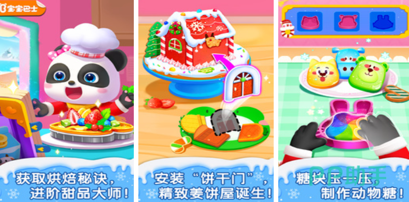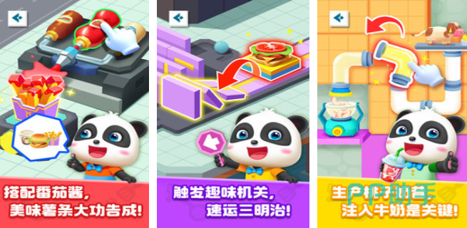 宝宝甜品店游戏中,小朋友摇身一变成为甜品店小老板,这里有15种热门甜品等待制作,制作时根据甜品谱准备食材,像制作酸奶卷,将对应食材放入电器,铲烂水果后滑动铲子翻炒,再用包装装起来,装点水果捞为甜品增添装饰,打造果味甜筒,西瓜切块榨汁与原味冰淇淋混合,用电饼铛制作蛋筒。