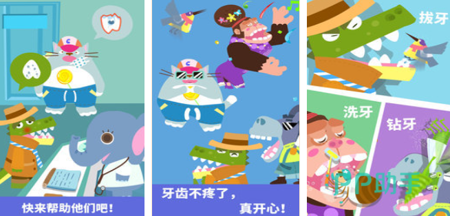 宝宝小牙医游戏中,带孩子走进牙科诊所体验牙医工作,游戏中,可爱小动物们牙齿出现问题前来就诊,小朋友先使用专业工具,仔细检查牙齿找出龋齿、牙结石,针对龋齿用牙钻去除腐坏部分,再填充材料,清理牙结石则需借助洗牙器,治疗结束后教导小动物正确刷牙方法。