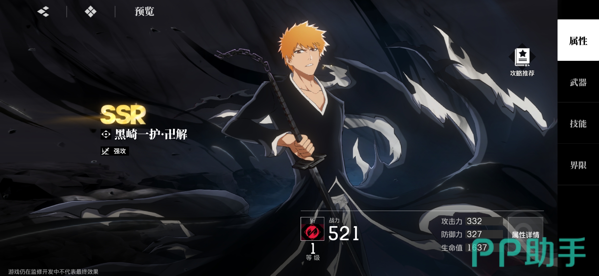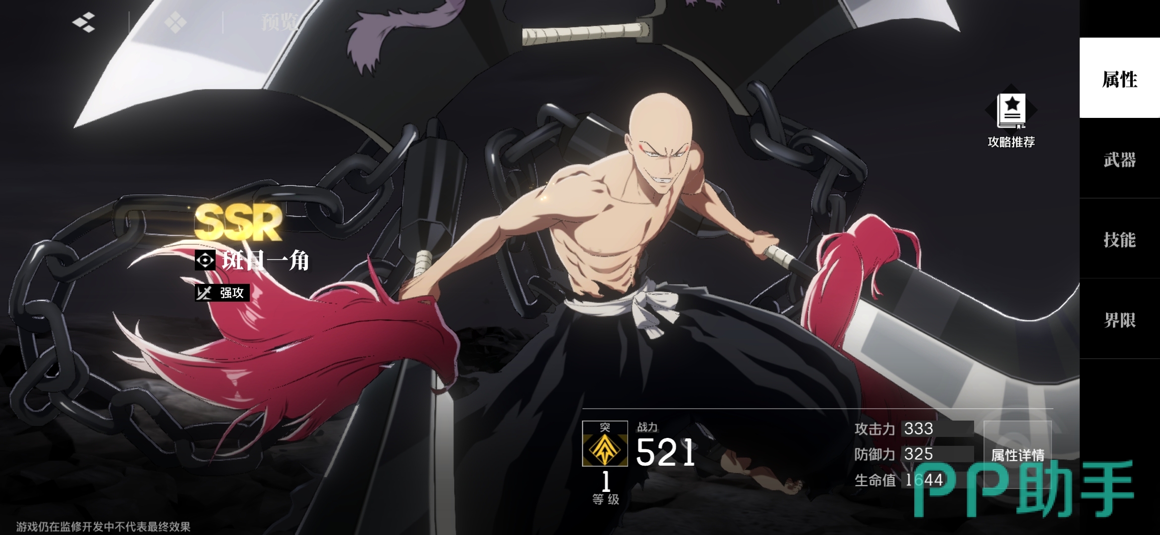 是非常强的范围输出角色,卍解后技能的强化使他在聚怪和群体输出上非常有优势,必杀技能爆发出巨大的伤害,非常适合应对多个敌人。