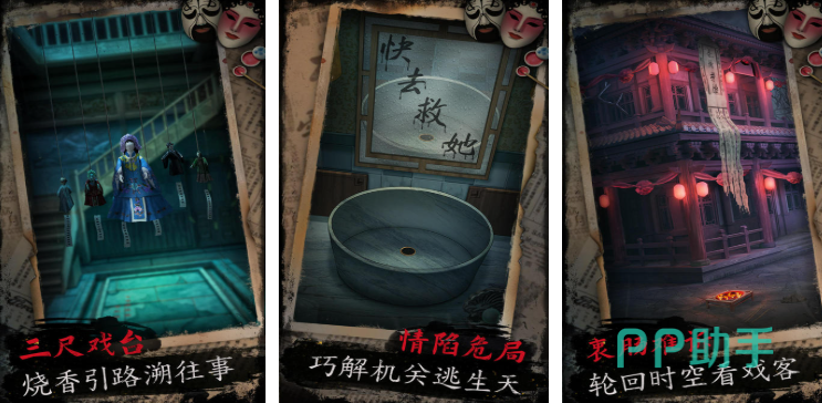戏怨游戏中,将恐怖氛围与戏曲元素深度融合,玩家置身于充满年代感的戏曲舞台及相关场景,如后台、戏班大院等,这里弥漫着阴森气息,每一处角落都散发着诡异,游戏画面与音效逼真,破旧戏服随风飘动,阴森戏曲声不时传来增强沉浸感,玩家需通过探索场景,搜集与戏曲相关的线索。