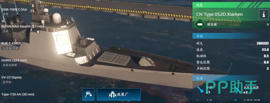 052D型驱逐舰,兼具火力、反潜和防空能力的多面手,通行证获取,凭借4导弹3火箭弹+主炮+直升机+自卫防空炮的优秀配置,高适应性高性价比,受到很多玩家的喜爱。下面将围绕现代战舰052d搭配进行分析,帮助大家根据资源与战术风格灵活搭配,充分发挥052d的战场价值。