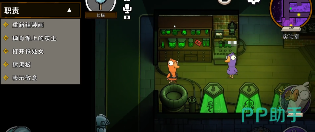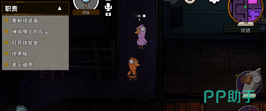 靠近目标使用技能,如果该玩家在当轮并未杀人,它的名字前面就会显示白色的小鸭子的图标,如果本轮杀过人,就会有红色鸭子图标出现。这个查验到本轮游戏结束之前,这个身份查验的效果都是不会有变动的,而每轮只能查验一个人。