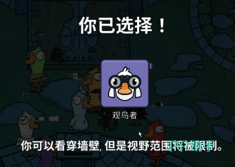 鹅鸭杀观鸟者的玩法思路就分享到这了,这一角色可以通过墙壁,看到对面房间情况,从而更加便捷找到线索,大家在看完上文后,一定要将这个能力灵活运用起来,这样才能获取最终胜利。