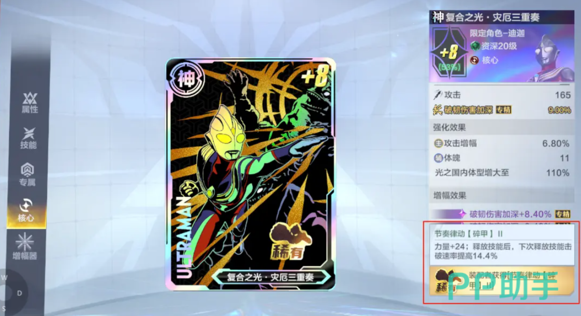 作为迪迦最终形态的战斗化身,闪耀迪迦不仅拥有极高的爆发力,还兼顾了机动性与生存能力。普攻的无敌段配合高频呼出技,使他在实战中可以迅速打出高额连段且规避部分控制。