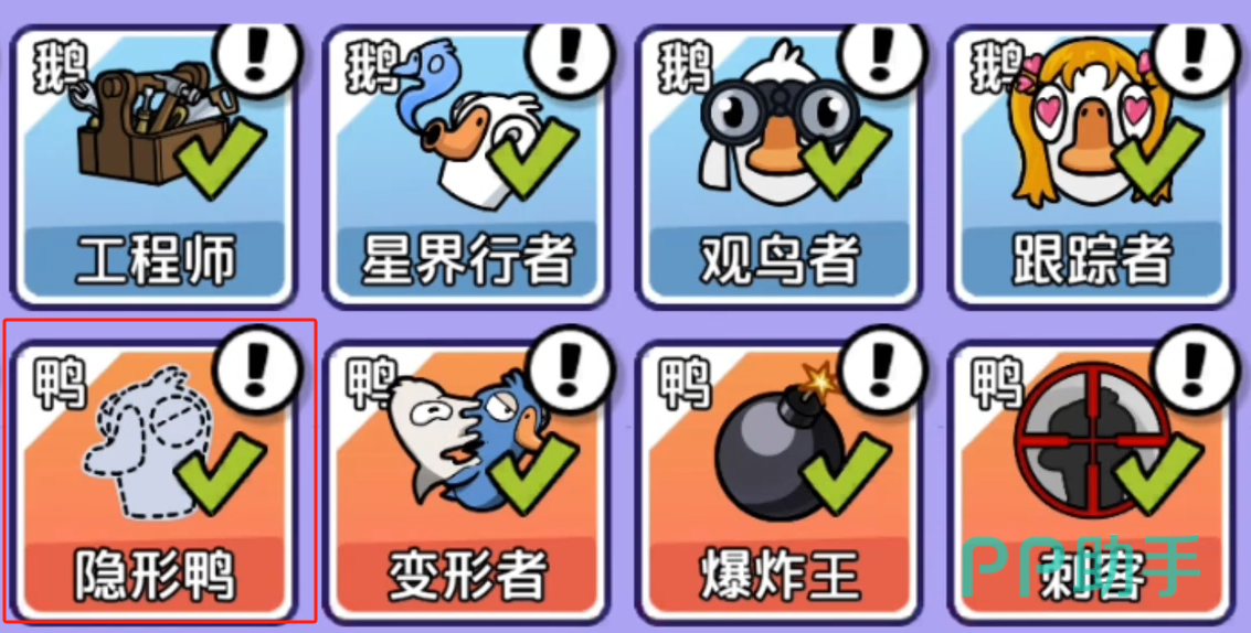 鹅鸭杀隐形者怎么玩?隐形鸭是一个高操作难度的角色,需要准确把控时间和运用好策略才行。合理利用隐身能力,配合破坏任务,可以极大提高胜率。如果喜欢潜行暗杀玩法,这个角色会非常有趣,不过也要学会进阶玩法才行。
