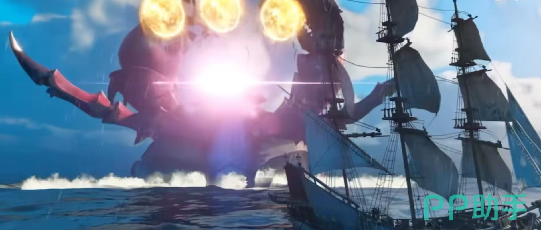 第1个宝藏蟹,它的巨型庞大,有着螃蟹般的外形,可以发射出巨大的火球对玩家的船队进行攻击,自己的背上还有着闪闪发光的宝藏,所以得名。第2个巨型鱿鱼,巨型鱿鱼的体型,非常庞大,有着非常坚硬的牙齿,伸出的触手能够放射出闪电,也是非常难缠的一种怪物。