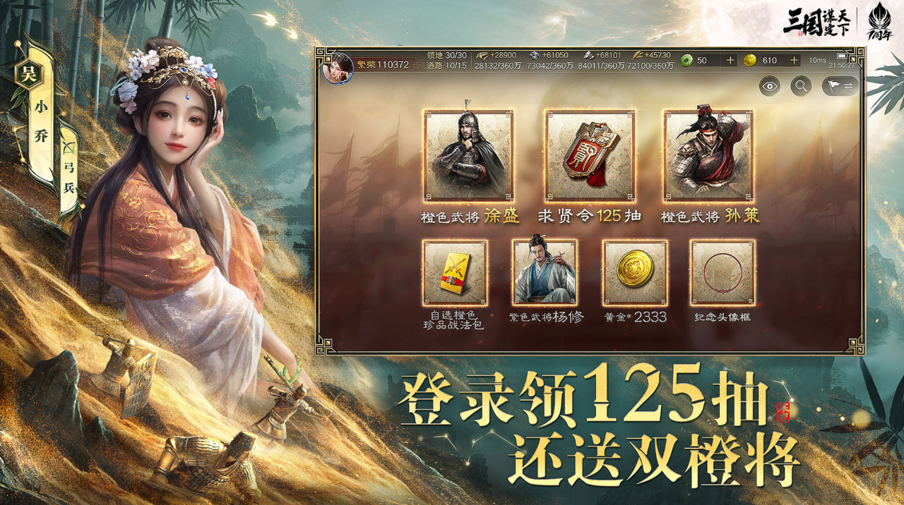 在游戏中,大家既能够化身睿智的指挥者,巧妙布局,以协同作战的策略逐步瓦解敌军防御;也可以成为勇猛无畏的先锋,带领精锐之师,直插敌军要害。其独创的立体战场,把三国时期的山川地貌逼真还原,每一处地势都可作为战术关键。还有实时变化的气候系统,暴雨来袭时,能成为大家奇袭的天然掩护;狂风呼啸时,或许会助力火攻之势。每场战斗都充满变数,等大家书写传奇。