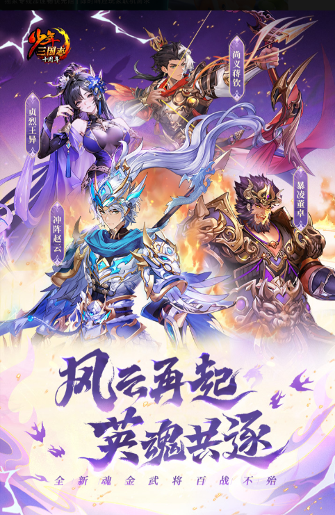 在这里,我们以少年人的独特眼光,再度踏入那烽火连天的三国乱世。游戏中精心还原了众多三国时期的知名武将,他们被细致地划分为四种不同类型。每位武将还有品质高低之别。玩家要引领这些角色,亲身经历那些流传千古的三国经典战役。指挥士兵不断征伐,战斗结束后收集碎片提升角色实力,更有PVP和主线副本玩法,助大家收获经验,赢取更多领地。