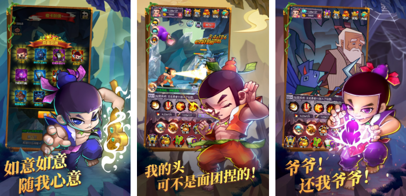 《少年葫芦娃》依旧以葫芦娃救爷爷这个经典的剧情为背景,同时又融合了角色养成和轻度策略玩法,主打的就是一个战斗加剧情探索,是一款全民向的动作类角色扮演手游。游戏1:1还原经典IP,无论是动作还是配音都与原著极其相似。横版的操作模式结合战斗时的连招系统可以让战斗节奏更加紧凑。