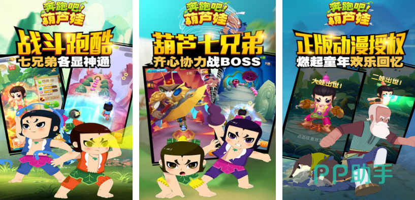 《奔跑吧葫芦娃》是一款以酷跑为核心玩法的手游,虽然采用的是2d横版模式,但酷跑的模式却一点都没有少。游戏改编自经典动画葫芦娃兄弟,所以你可以操纵7个葫芦娃中的任意一个在不同的场景中奔跑并拯救被蛇精抓走的爷爷。如果完成任务的话,还可以在相应的商城中兑换角色皮肤,部分皮肤还会有属性加成的。