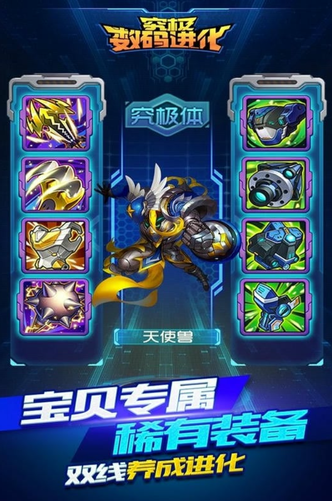 以数码宝贝动画作为背景,整个游戏涉及到酷炫的技能也有连招系统,在战斗的时候可以获得华丽的体验感。玩家进入游戏之后可以收集数码宝贝,然后让他们养成,最终让他们进化成比较强大的宝贝,整个游戏涉及到的玩法比较多,能够让玩家重温经典的名场面也能够感受到剧情所带来的特色。玩家需要挑战副本,也要参加活动,获得较多的资源。
