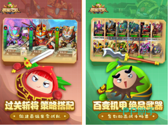 以经典国产动画片,为大家所推出的,融入了大家熟悉的很多人物,以及可爱的风格。在上百款角色当中,需要进入战场上,利用战术搭配,以及释放出华丽的技能以后,享受战胜敌人的喜悦。在收集了游戏中的机甲队伍以后,通过打造厉害的果宝战队,享受独具特色的战斗体验,也是采用3d的风格为大家所设置,由动画片正版授权。