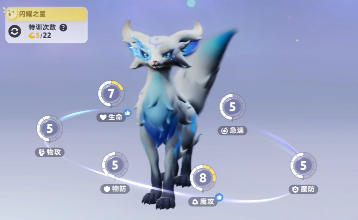 星乐蒂:可爱的蓝灰色小飞鼠,开局就会指引玩家捕捉它。让人意想不到的是,在它进化之后就会成为强大的魔法师-星魔师。