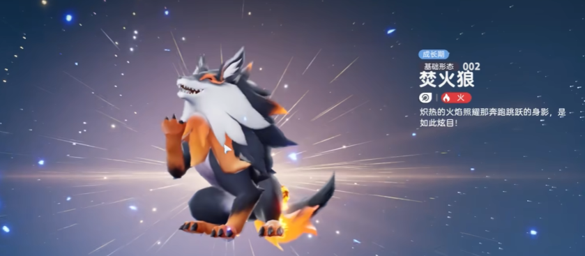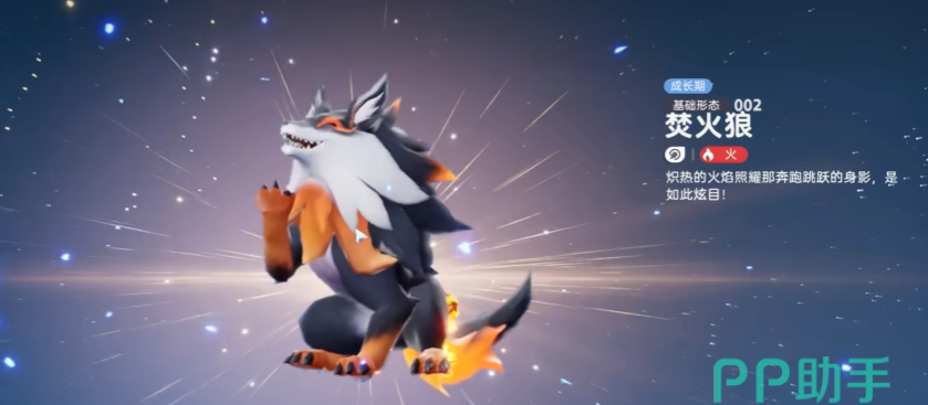 焚火狼:由小炭犬进化而来,火焰能力得到增强,并且拥有特殊奔跑技能,帮助我们快速到达目的地。