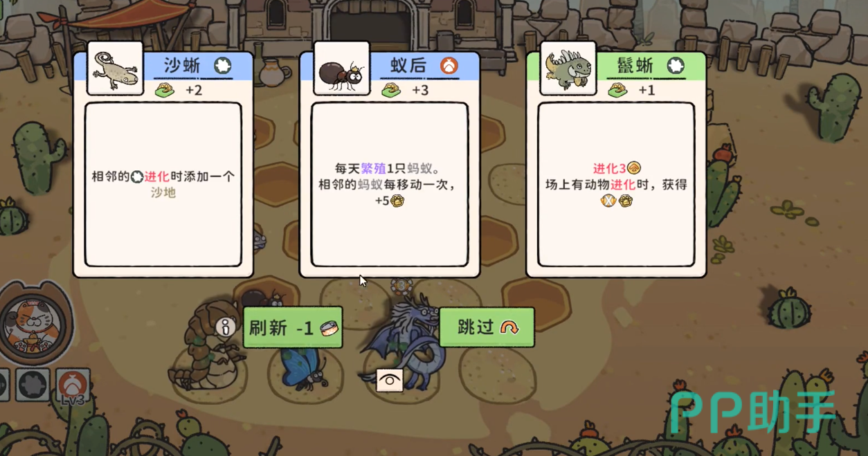 轮蚁流:蚂蚁作为核心,玩家需要控制蚂蚁的数量,并且借助蚂蚁去布局,才能够实现资源的高产出,并且要团队协同,提高蚁后的金币产出,还需要利用移除道具清理仙人掌,马楼等等动物,让整个布局优化合理。在该流派中,移除卷是特别重要的,它可以有效清理过多的动物或者是竞争对手。