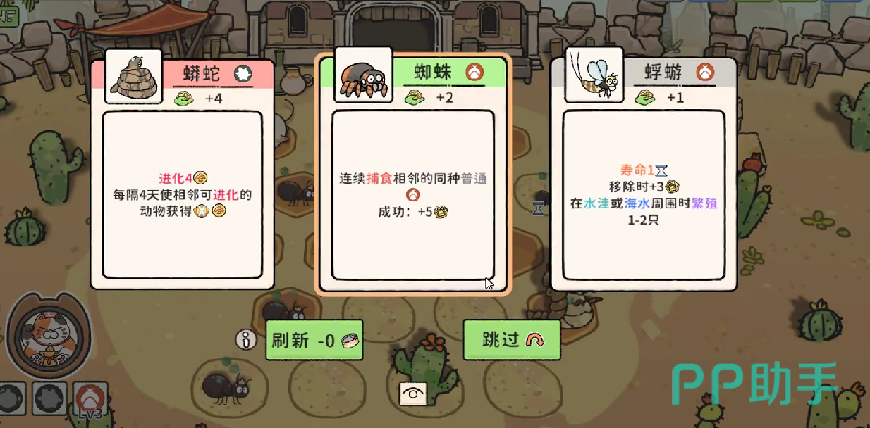 追杀流:利用蜘蛛连续捕食,屎壳郎加速资源的产出,触发移除的机制,这样就可以实现资源跟捕食的有效循环。选择该流派可以快速的积累资源,到了中后期,虫虫家族追杀流将会解锁新的技能,也可以提高捕食的效率。