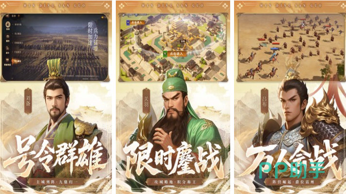 问鼎三国是款剧情线涵盖三国整个历史的3D策略游戏,次时代的3D战争画面无不让玩家叹为观止,扮演主公发号施令的战争操作也是点睛之笔,支持万人参与国战带来的沉浸感更令人血脉喷张,城池建设还有兵种搭配等佛系玩法可玩性极高,三国历史名将可用各种方式进行招募,军队的属性也不同可以尽情搭配兵种战斗。