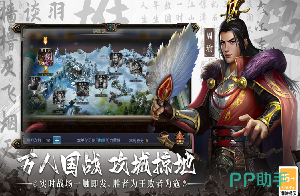 这是款能让玩家以三国主公身份出现的万人国战神作,拥有震撼庞大的三国地图等玩家们游历,错落有致的地形可以用来布置各种各样的战术,阵法、兵种和武将都很多样期待着主公尽情搭配,用策略交战的方式攻城掠地能带来真实的战争快感,场景细节呈现逼真带来的战场气氛更为激烈,列位主公不妨在这款策略攻城手游中尽情挑战。