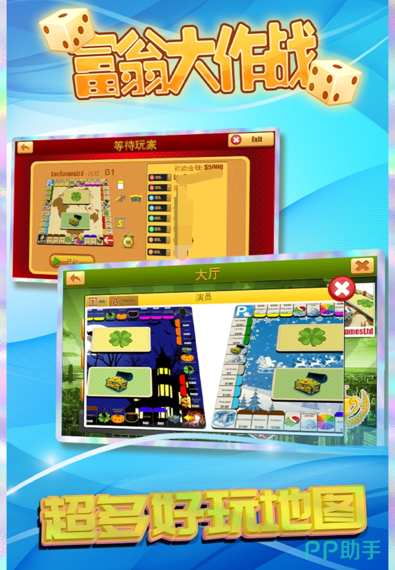首先,每个玩家都能成为富翁,前提是你的资产足够多,各种地产,以及房屋的存在,这都是你成为富翁的关键。其次,富翁大作战的规则是能改变的,你的房间里可以邀请更多朋友进入,而且,对局中不仅是购买土地的快乐,还是拍卖资产的富豪快乐。游戏作战不仅依靠骰子的投掷,更依靠玩家的生意能力啊。
