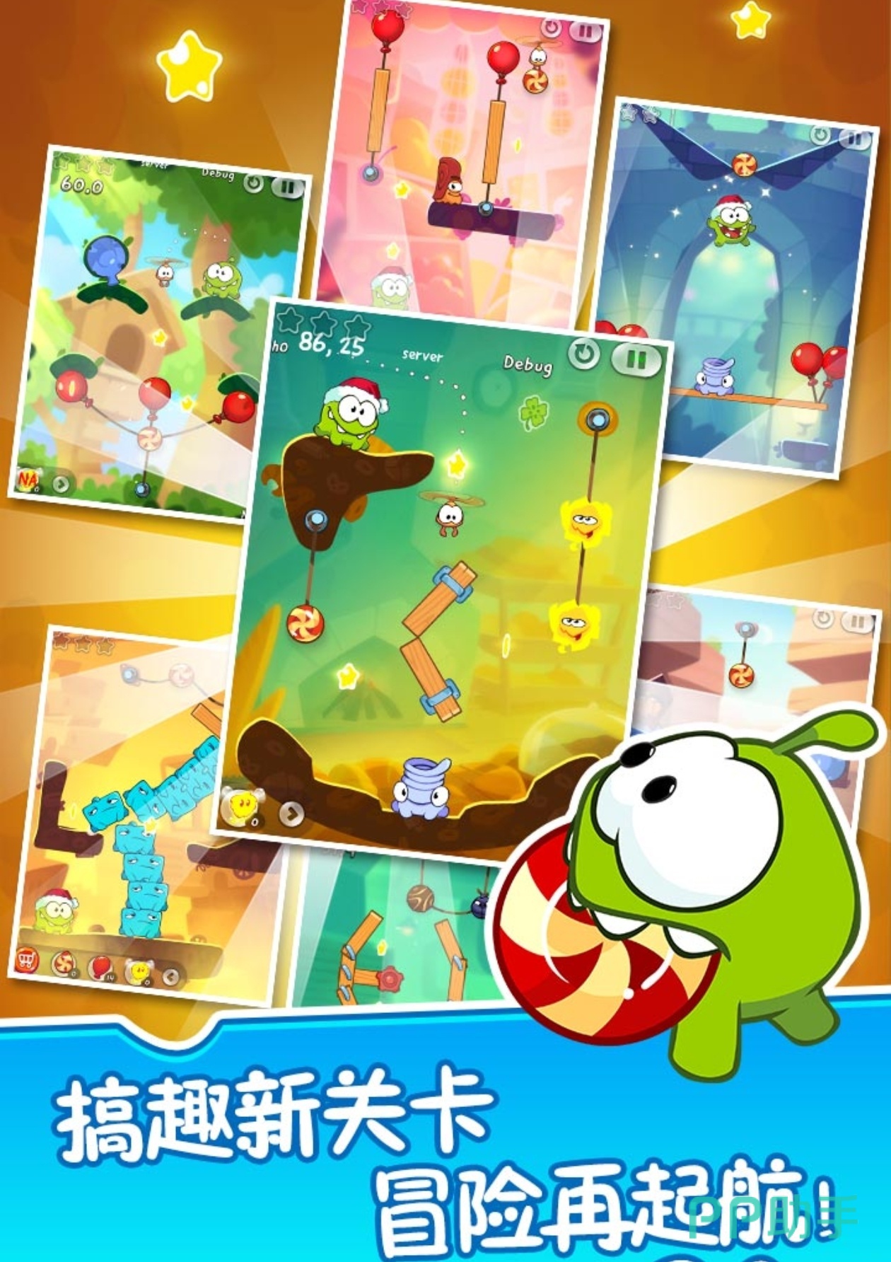 首先,要想通过一连串的关卡,就要观察机关的摆放,以及绳子连接的地方等等。其次,你还能装扮你的角色,让他的外表更加可爱,或者酷炫。另外,在割绳子关卡中,你还能运用道具功能,来得到更多的星星。有趣的是,不仅有普通的关卡,还能解锁隐藏的关卡来割绳子挑战。