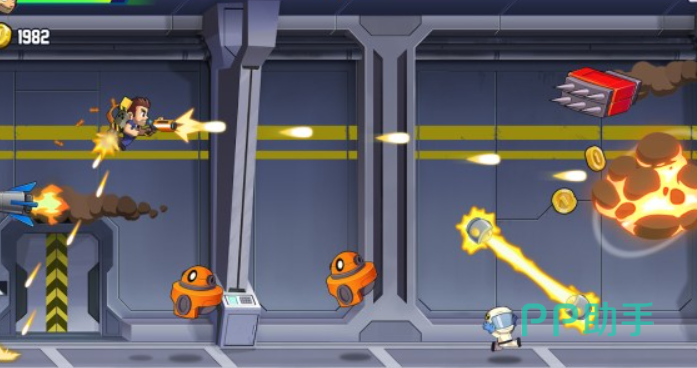 轻触屏幕的极简操作下,暗藏着令人着迷的动态平衡机制——喷射背包的燃料管理需要精确到毫秒的决策,沿途随机出现的加速道具与致命障碍形成刺激的博弈。卡通渲染的美术风格并非简单的视觉包装,而是通过夸张的角色动态和爆炸特效,构建出独树一帜的喜剧张力。当玩家操控角色在高压电线和导弹间穿梭时,每个惊险瞬间都伴随着会心一笑。