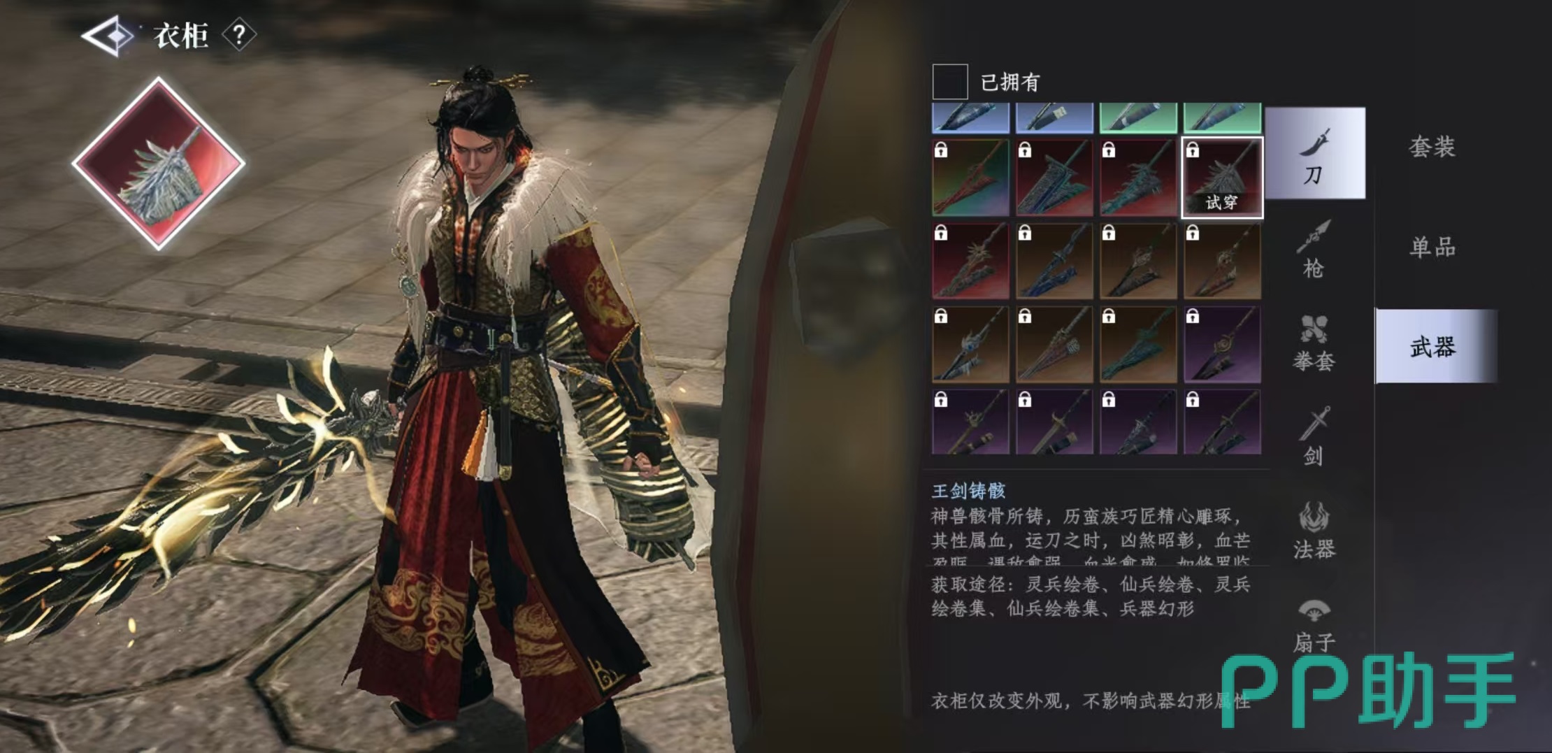 如果不喜欢套装,也可以通过单品选项自己进行搭配,适合一些喜欢动手的玩家去选,这些单品也都有不同的获取方式,同样可以在这里直接购买。最后是武器,武器也需要和自己其他的外观搭配起来,这样一套很合适的外观就搭配完毕了。当大家闲暇无事的时候,就可以多在衣柜中浏览一下这些外观套装或单品,提高一下自己的审美趣味,也是非常有乐趣的。