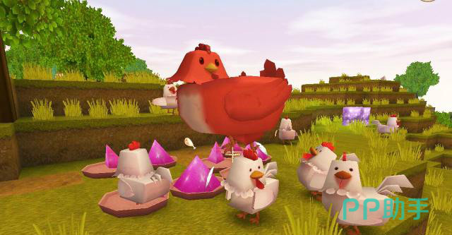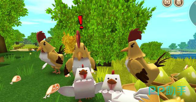 鸡饲料和变异小蘑菇能够合成小蘑菇饲料,吃完饲料的小鸡有概率会成为战斗鸡,战斗鸡的攻击力特别强,战斗鸡能够在荧光晶块铺成的道上巡查,还会主动攻击除了人类之外的任何生物!