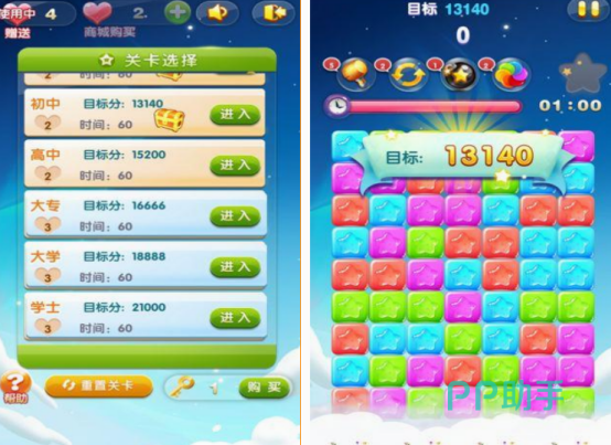 简单好玩的休闲手游,不仅适合4岁的小朋友,所具备的关卡也是比较丰富,玩法超级简单的。在五颜六色的星星方块中,通过将三个或以上的方块进行移动,顺利消除以后,就能获得相应的分数,并没有任何的时间限制。只要在闯关的过程中达到目标所要求的分数以后,就可进入下一个关卡,也支持选择不同的关卡难度。