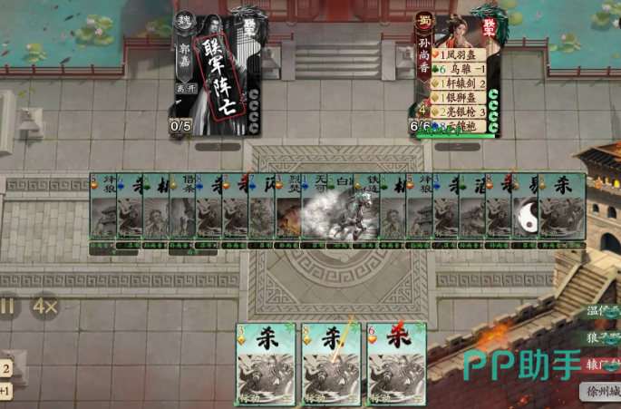 孙尚香和甘宁的强度也是比较强势的,其中甘宁的百人夜袭需要绑定黑桃牌才能够触发拆牌效果,在操作的时候大家可以先用二技能将手里的牌全变黑桃,重新洗牌再摸。孙尚香满血时装备的收益是比较大的,所以大家开局的时候,先装装备。